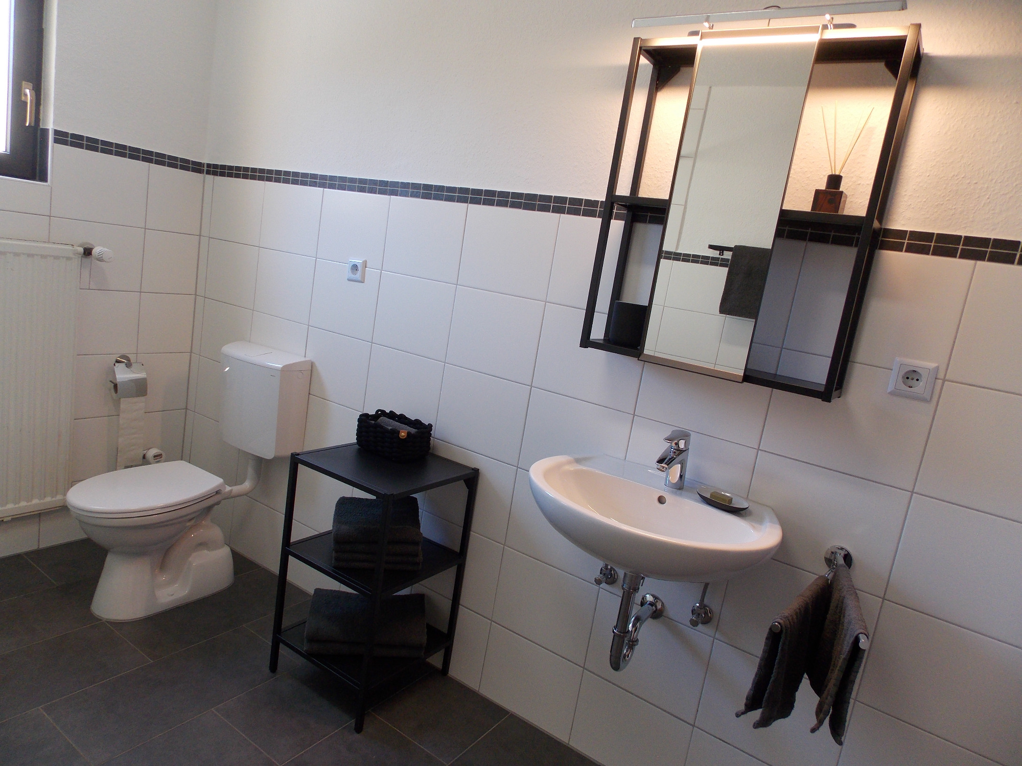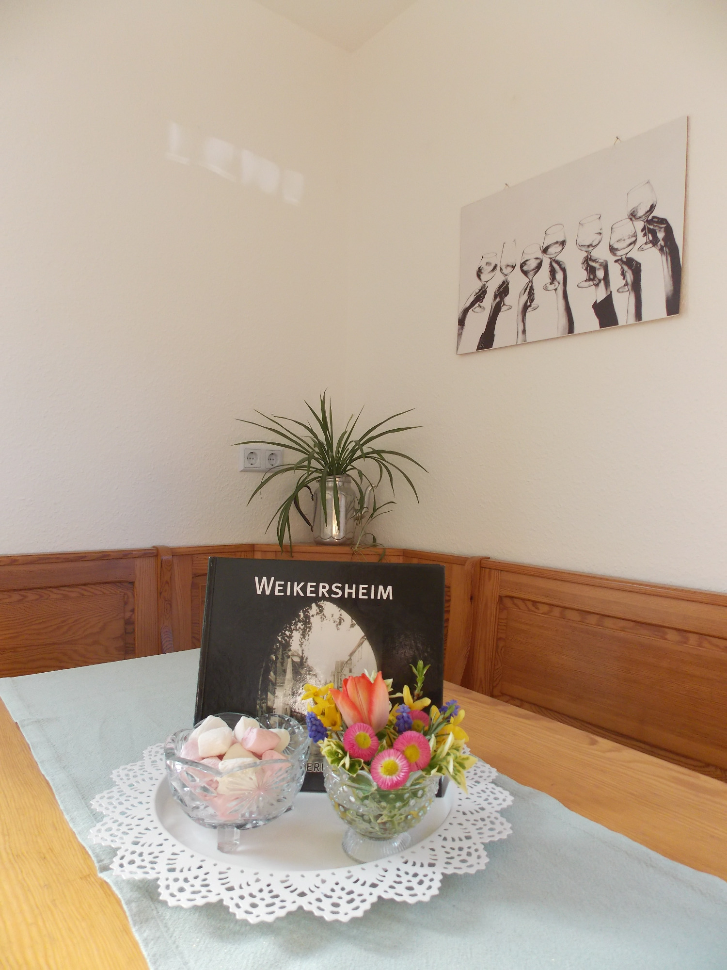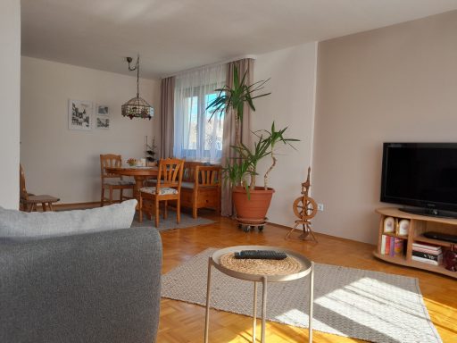 Gemütliches Wohnzimmer mit Kabel-TV, DVD-Player, Gesellschaftsspielen und Infomaterial zu Weikersheim und Umgebung.