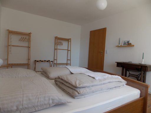 Großzügiges Schlafzimmer mit Doppelbett. Babygitterbett auf Anfrage möglich.